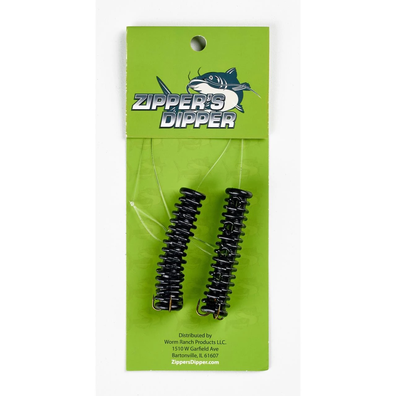 Zipper’s Dipper offers the best, simplest way to catch more catfish and is designed specifically for fishing for catfish on the bottom using a dip bait. Simply clip your snap swivel onto the loop weight in front of the snap swivel as needed depending on current & water depth. Place dry Zipper’s Dipper into a jar of dip bait, work dip bait into the grooves and holes with a stick, dip the baited Zipper’s Dipper in the water, then smoothly cast. Keep needle nose pliers on hand for easy hook removal.